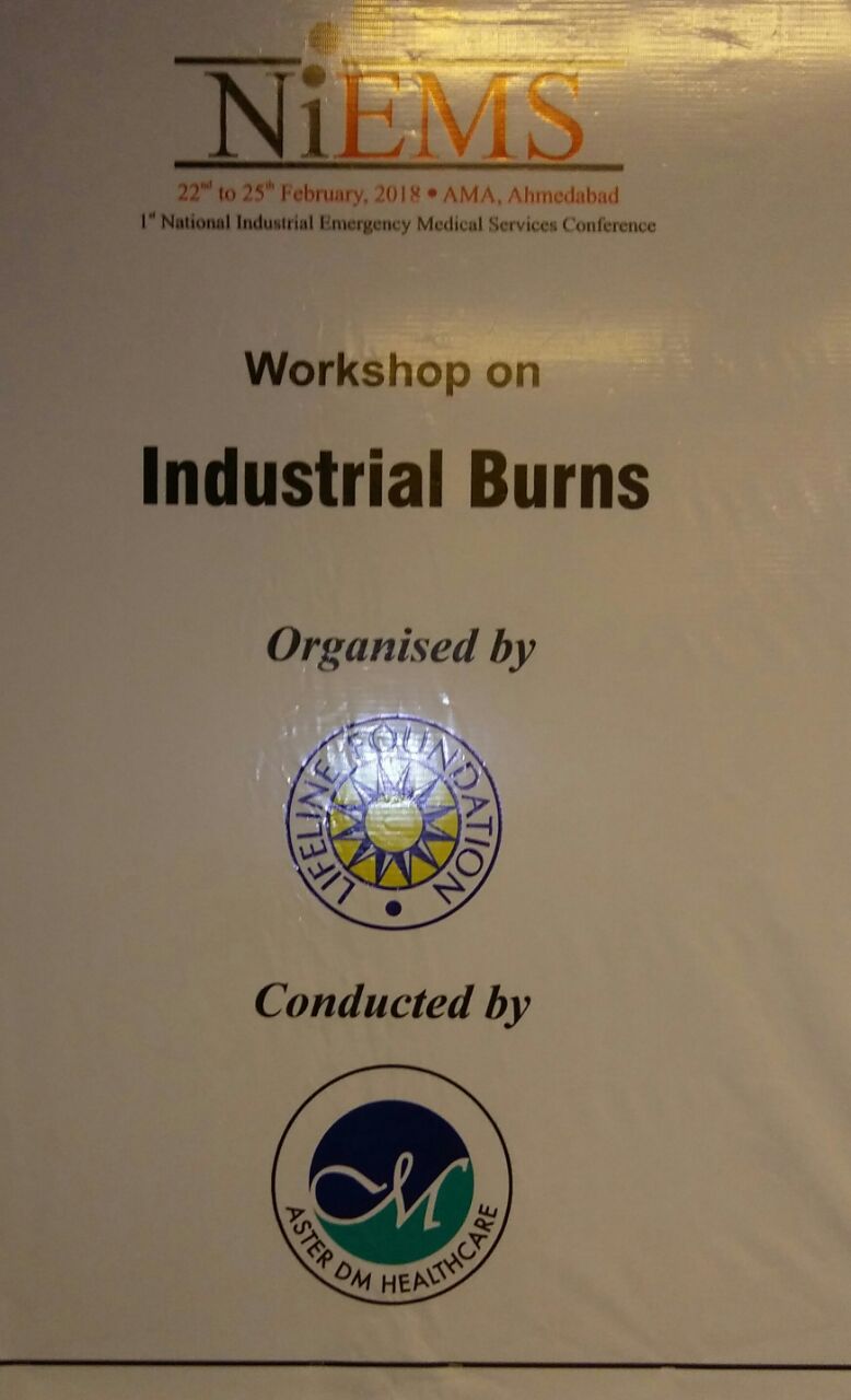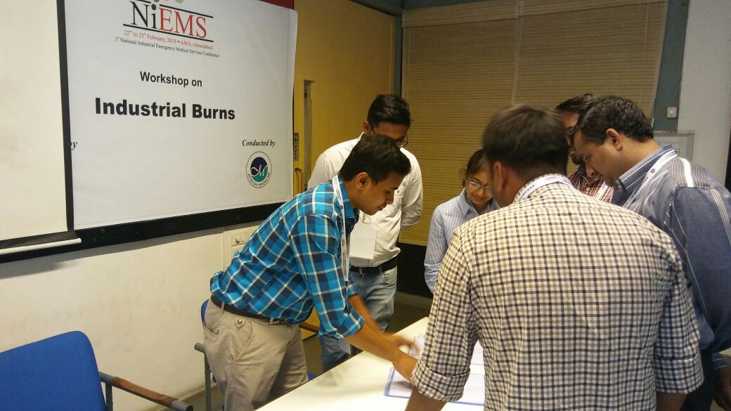 India’s first National workshop on Industrial burns for doctors , Paramedics and Safety officers held at AMA Ahmedabad on 22 and 23 Feb 2018 part of NiEMS